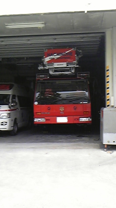 ↑八戸市役所(公会堂とかあるところ)の前にある消防署のはしご車