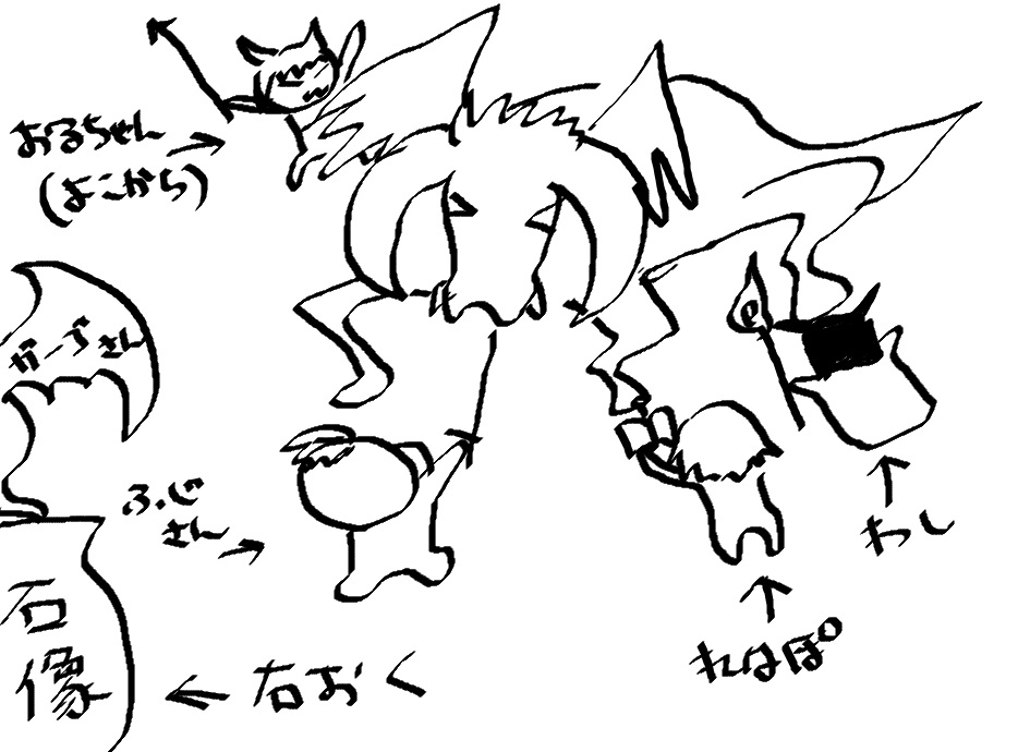 ボスの向きが、お尻が石像の方をむいていたのよね。でも、結局はソッチ側にいくことがなかったのでなんともなかったんだけれども、